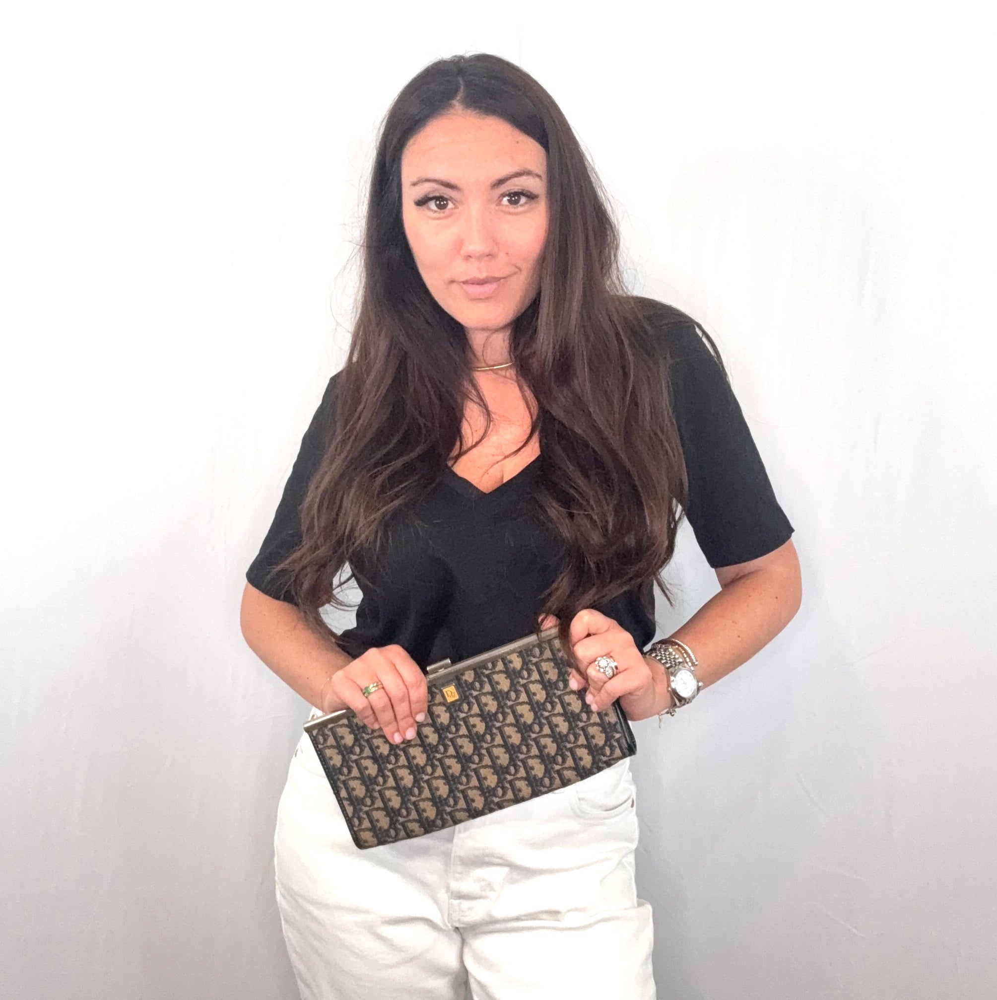 Borsa a tracolla in tela monogramma obliquo marrone vintage Christian Dior