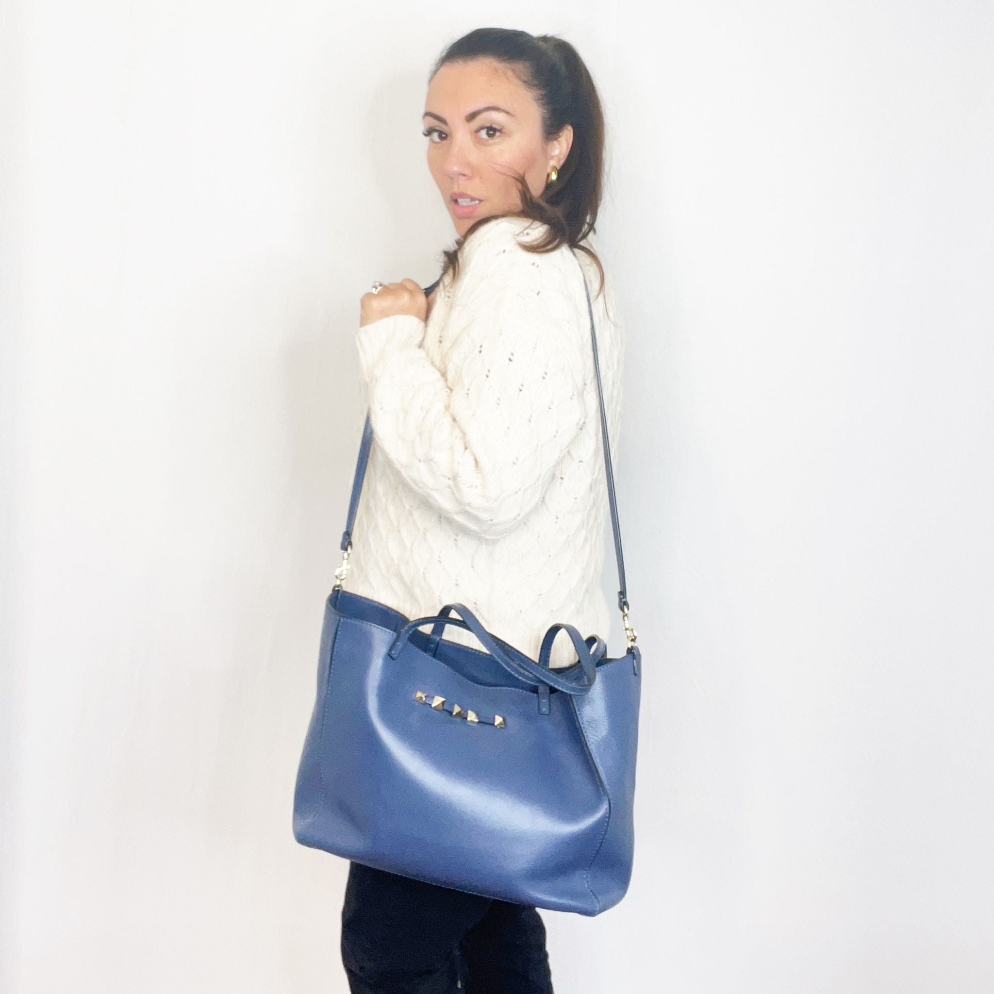 Borsa a tracolla Rockstud Tote in pelle blu Valentino Garavani