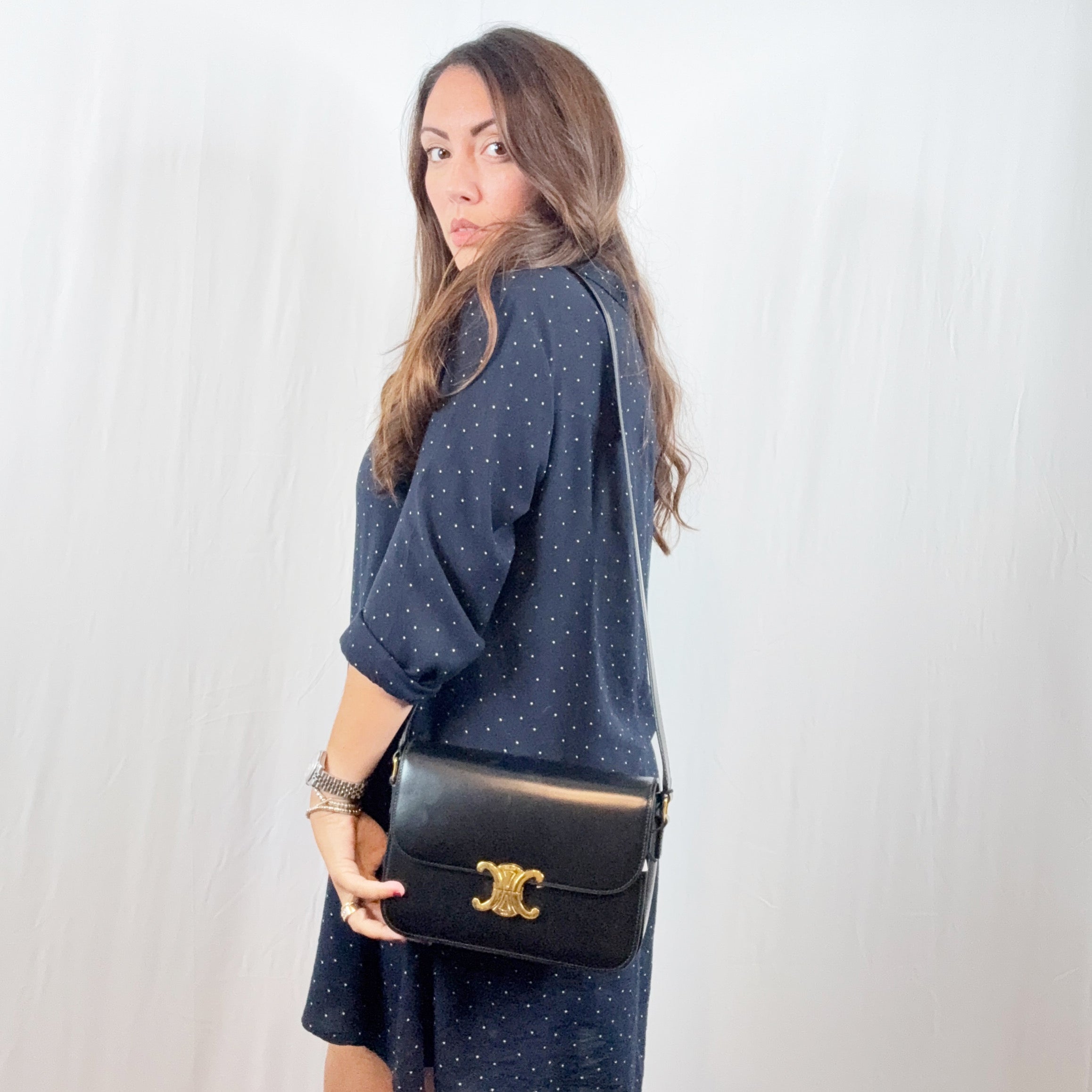 Celine Black Leather Triomphe Classique Medium Shoulder Bag