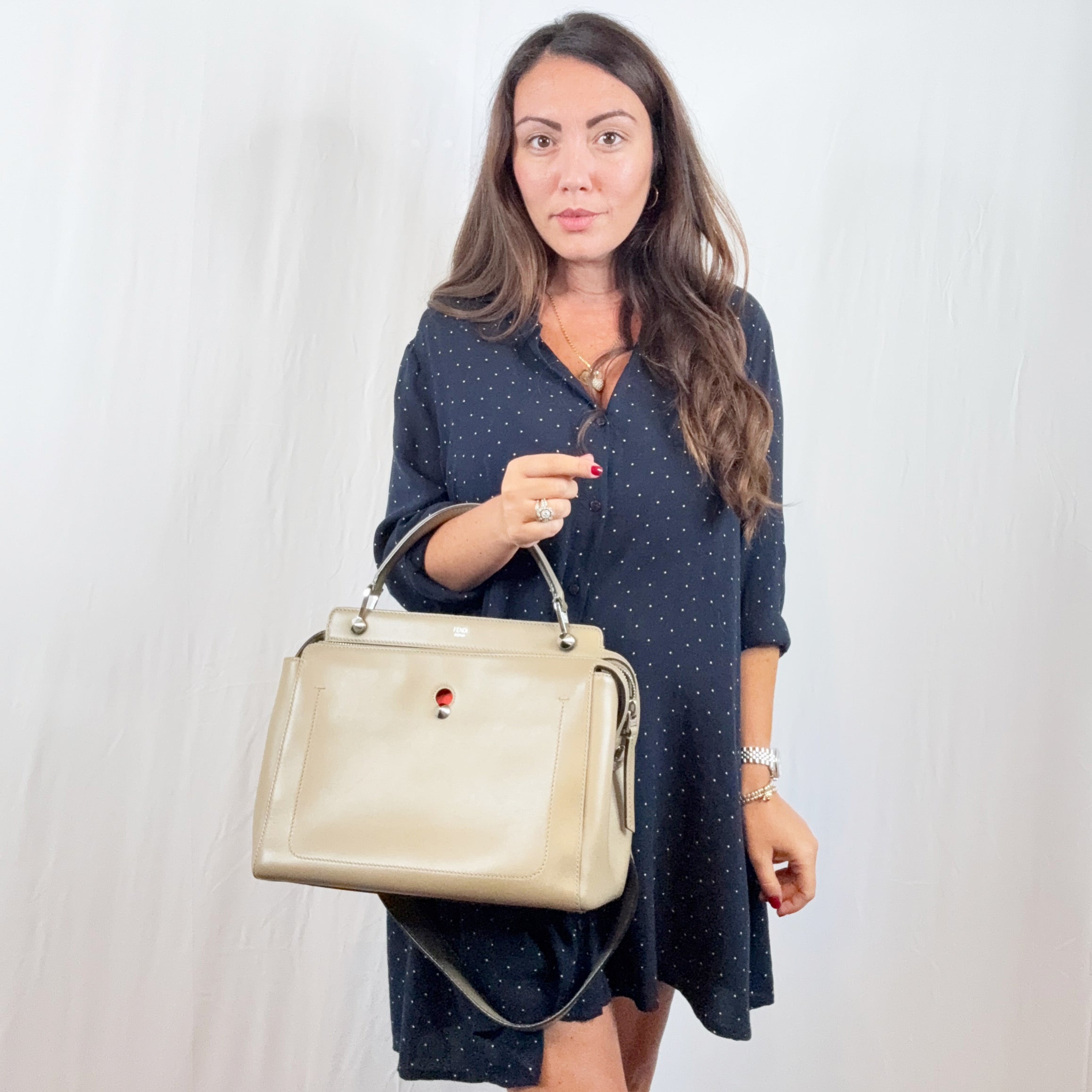 Fendi Taupe Leather DotCom 2 Way Tote Handbag with Shoulder Strap