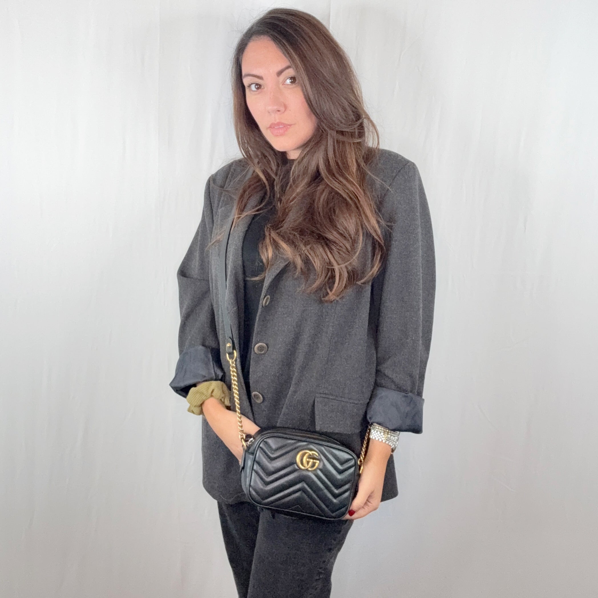 Gucci Black Leather Mini GG Marmont Matelassè Camera Shoulder Bag